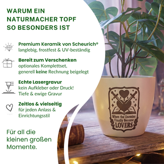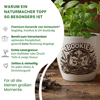 "Hier bekommt man wirklich was für sein Geld. Der Keramiktopf ist qualitativ sehr hochwertig. Die Gravur ist professionell und lässt den Topf insgesamt als ein gelungenes Geschenk strahlen."– Stephanie A.