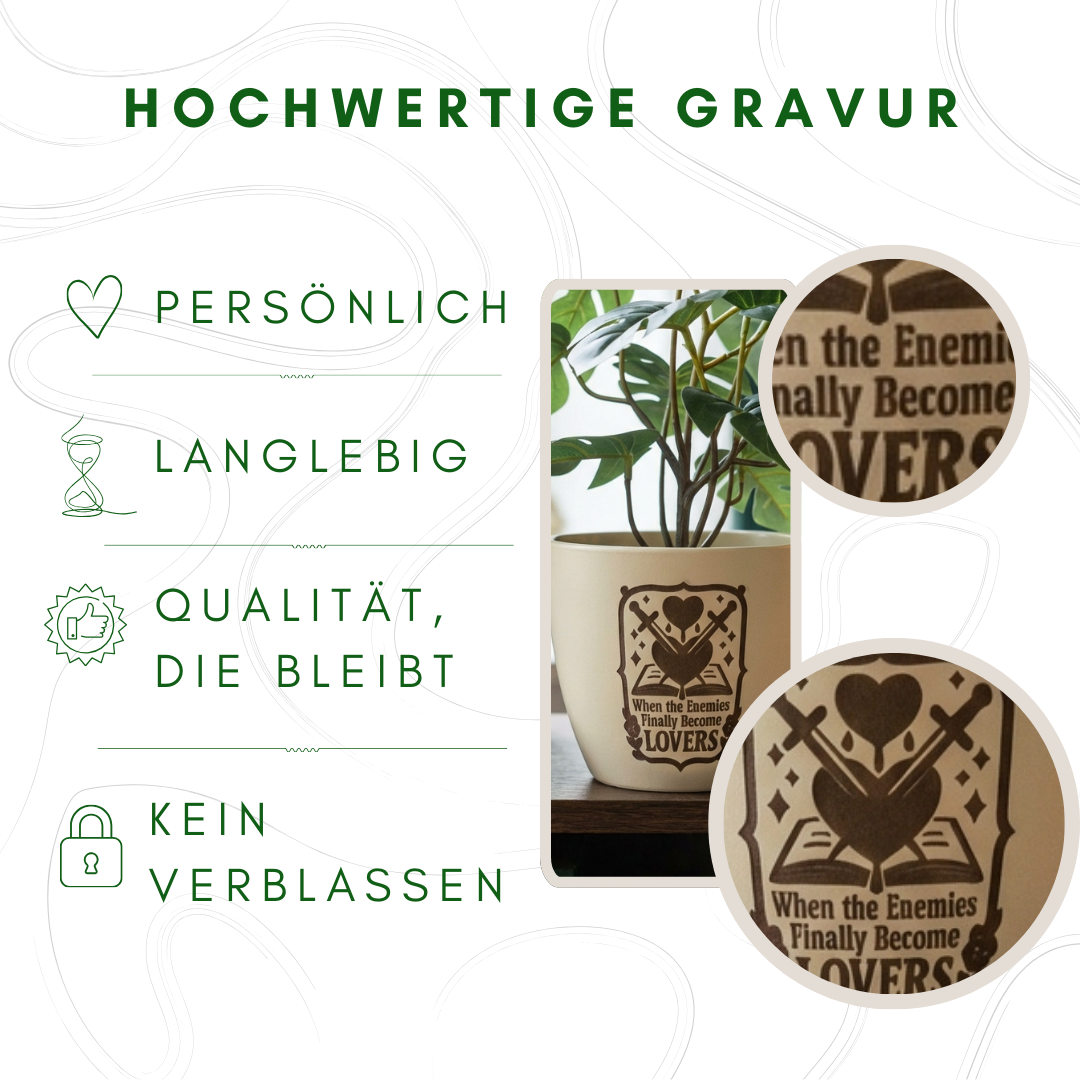 Ein Blumentopf, der genauso spannend ist wie deine Lieblings‑Enemies‑to‑Lovers‑Story: Perfekt fürs Bücherregal, die Leseecke oder als Geschenk fürs Book‑Club‑Mitglied. Der Topf wirkt stylish und doch warm, genau wie die Szene, in der zwei eigentlich Unvereinbare plötzlich nicht mehr ohneeinander können. Ob als Blickfang neben Lieblingsromanen oder als Statement auf dem Fensterbrett: er bringt Story‑Magie direkt ins Zuhause.