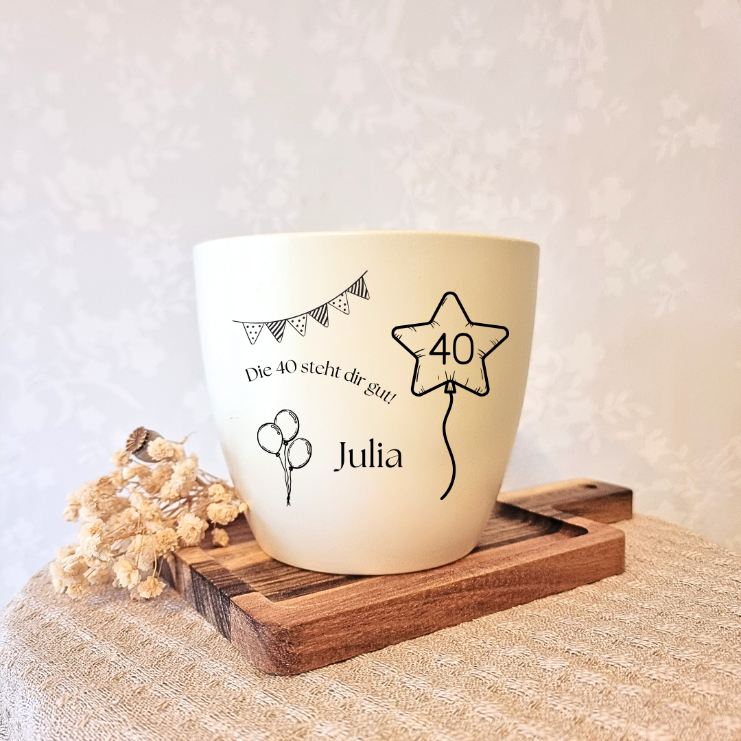 Echt eine schöne Idee der Blumentopf. Die Gravur sieht auch super aus. Das Geburtstagskind hat sich sehr gefreut.