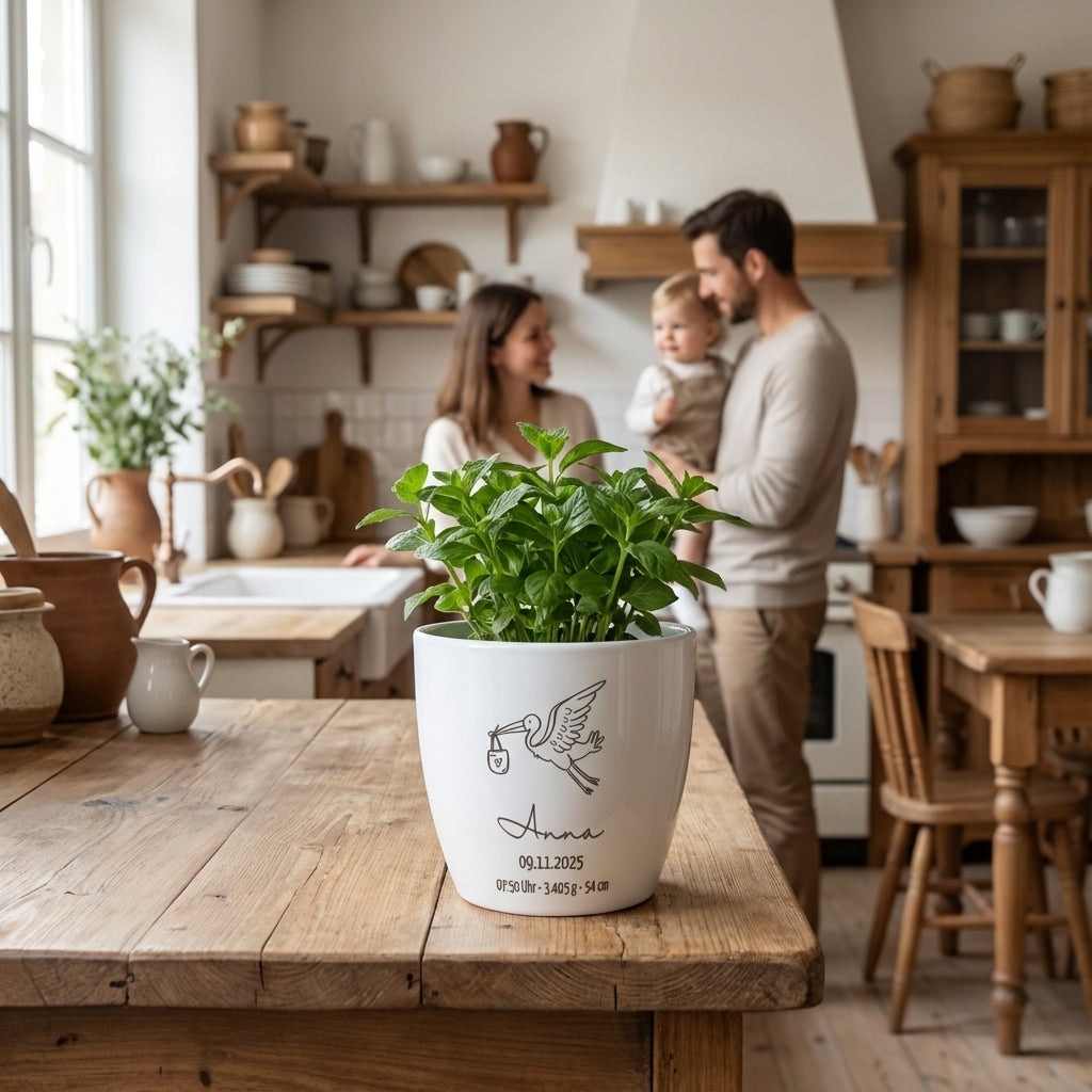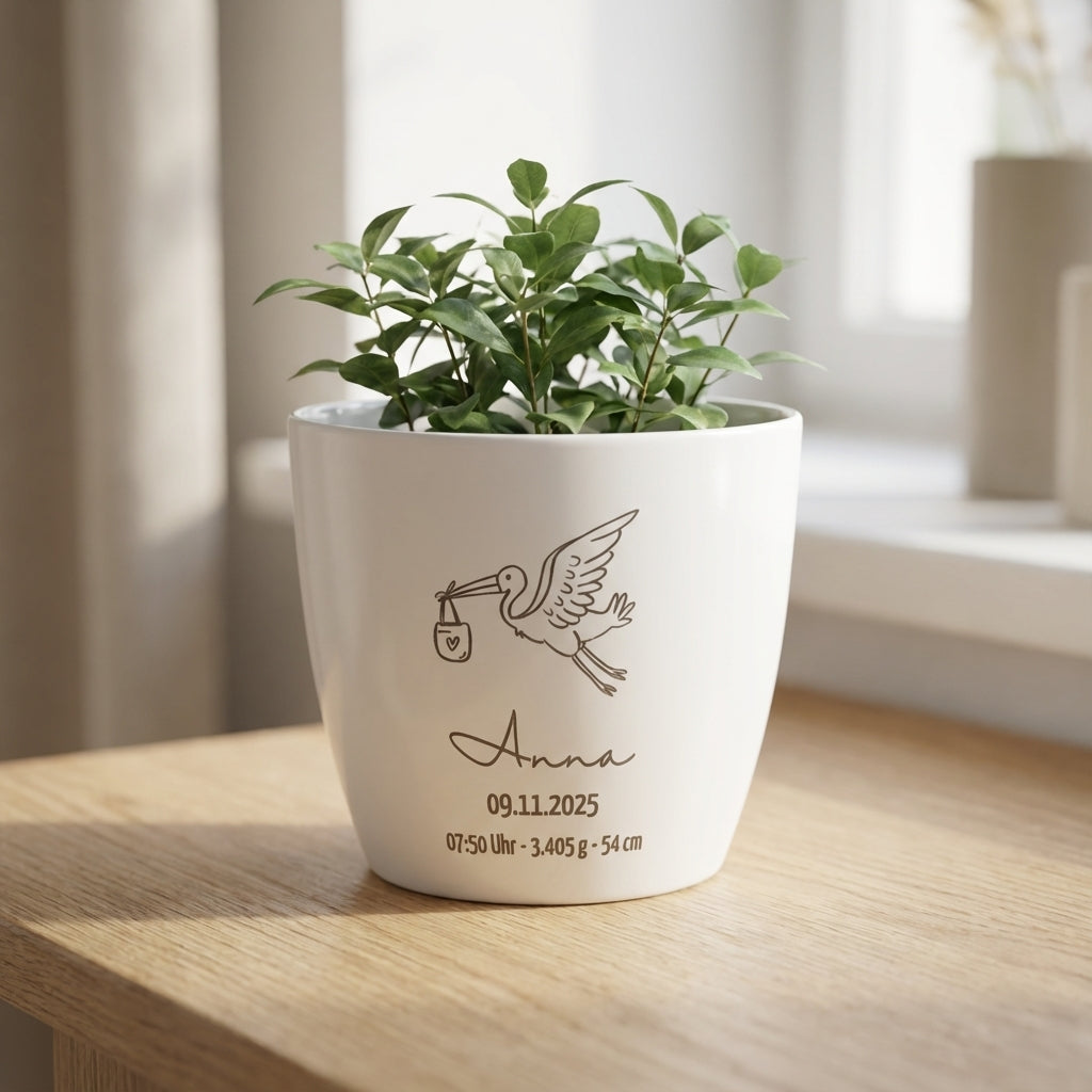 Mit einer individuellen Gravur wird jeder Blumentopf zu einem einzigartigen Erinnerungsstück – ein liebevolles Andenken an die ersten besonderen Momente eines neuen Lebens. Ob Name, Geburtsdatum oder ein kleiner Spruch: So wird der Topf zu einem persönlichen Schatz, der noch lange Freude bereitet.